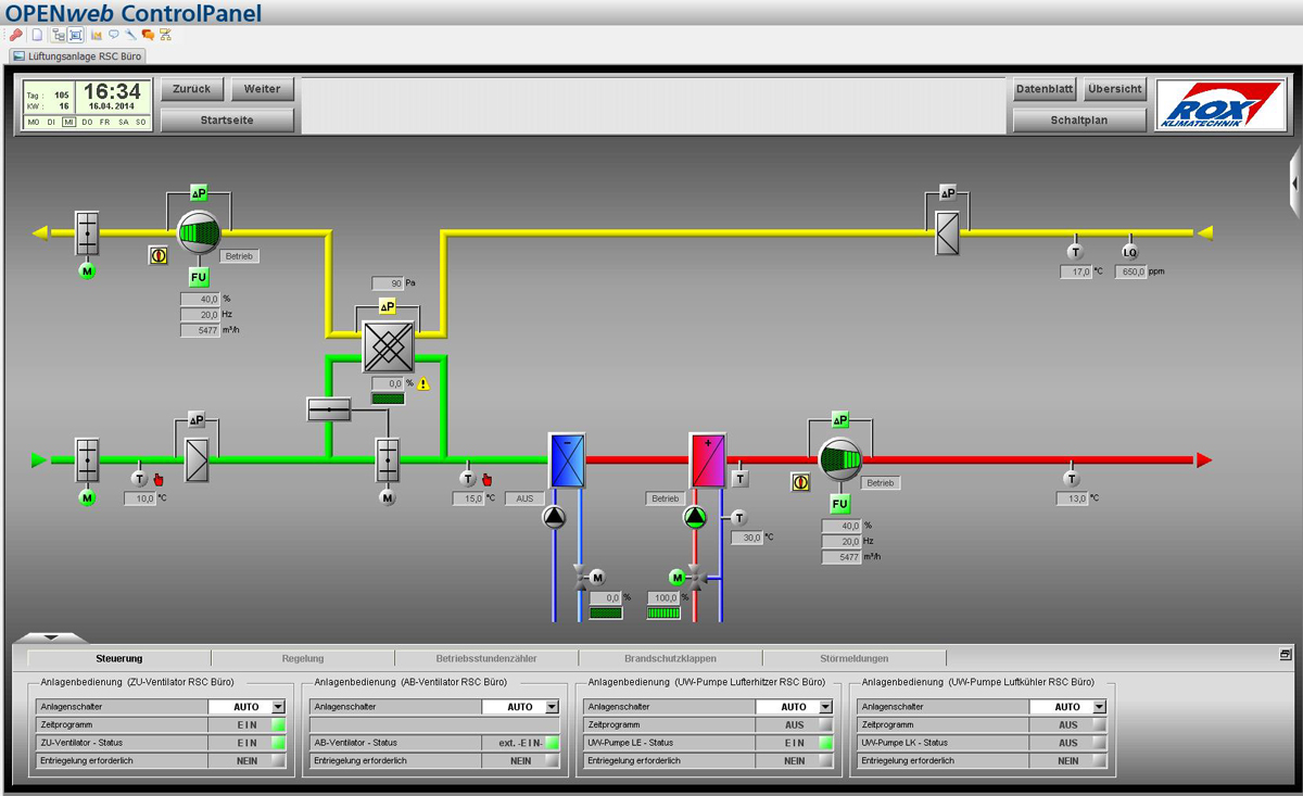 Die Visualisierung kann am Smartphone, am PC oder Notebook oder auch am Tablet dargestellt werden. Am Smartphone oder Tablet wird dies mit Hilfe der APP realisiert. Am Desktop-PC kann entweder über den Browser oder über eine Applikation auf die Anlage zugegriffen werden. Auf die Anlage kann ebenfalls über WLAN zugegriffen werden. An allen Geräten können sämtliche Funktionen des RLT-Gerätes geschaltet werden.