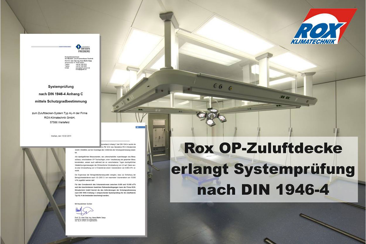 Die Mindestanforderungen nach DIN1946 Teil 4 werden weit übertroffen. Die Prüfungen der OP-Zuluftdecken in den Anlagen durch Hygieniker bestätigen den extrem niedrigen Kontaminationsgrad.