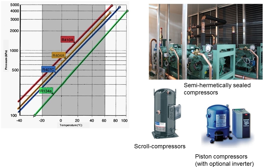 We use R407C as our standard refrigerant. However, this may differ from case to case, depending on application and operation. The decision about the appropriate refrigerant also takes into consideration the application area and financial concerns. Where required, natural refrigerants can also be used, such as R290. This neither increases the greenhouse effect nor contributes to the depletion of ozone and is therefore not harmful to the environment.